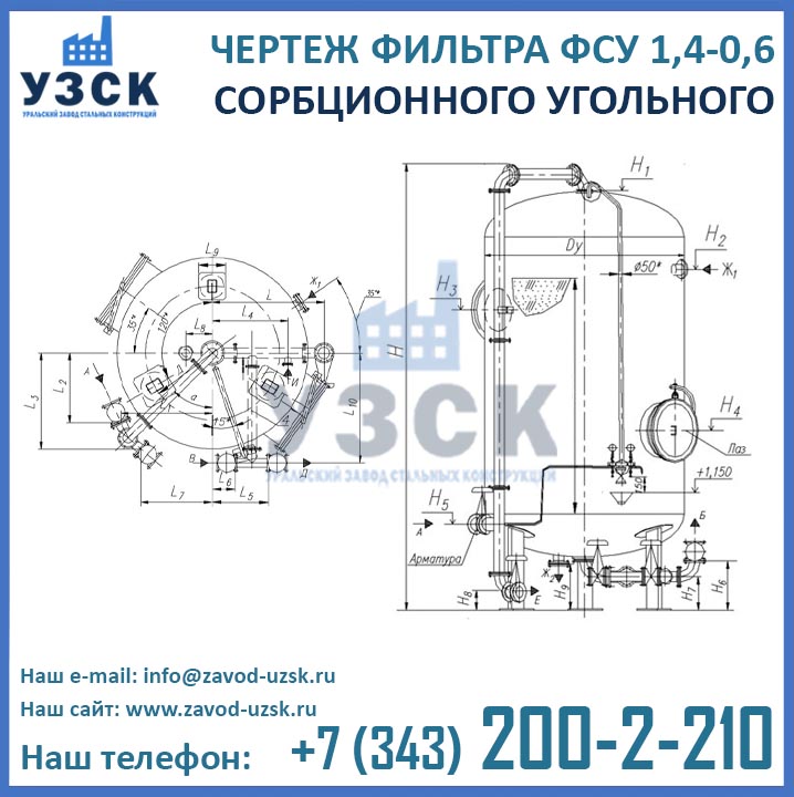 Если вы ищете фильтры ФСУ-1,4-0,6 в Сатпаеве от изготовителя, то Вы на правильном пути! Уральский завод стальных конструкций – непосредственный производитель сорбционных фильтров ФСУ, предлагающий самые выгодные цены на ФСУ-1.4-0.6 в Сатпаеве. По окончании процесса производства угольные фильтры проходят гидравлические испытания пробным давлением 0,9 МПа на аттестованном гидростенде, находящимся в собственности завода УЗСК. Мы гарантируем высокое качество выпускаемой продукции, и в этом уже убедились ведущие предприятия промышленного сектора России и стран ЕАЭС (см. раздел «Наши клиенты»).