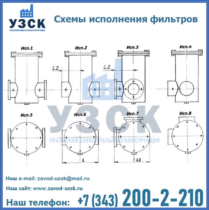 Из-за этого и разнится обозначение на ФГ и ФГУ, соответственно. Фильтры также могут быть вертикальными и горизонтальными, также может быть предусмотрена врезка сбросного трубопровода. Какой бы тип фильтра ни понадобился, завод «УЗСК» в Сатпаеве занимается производством любого из них.
