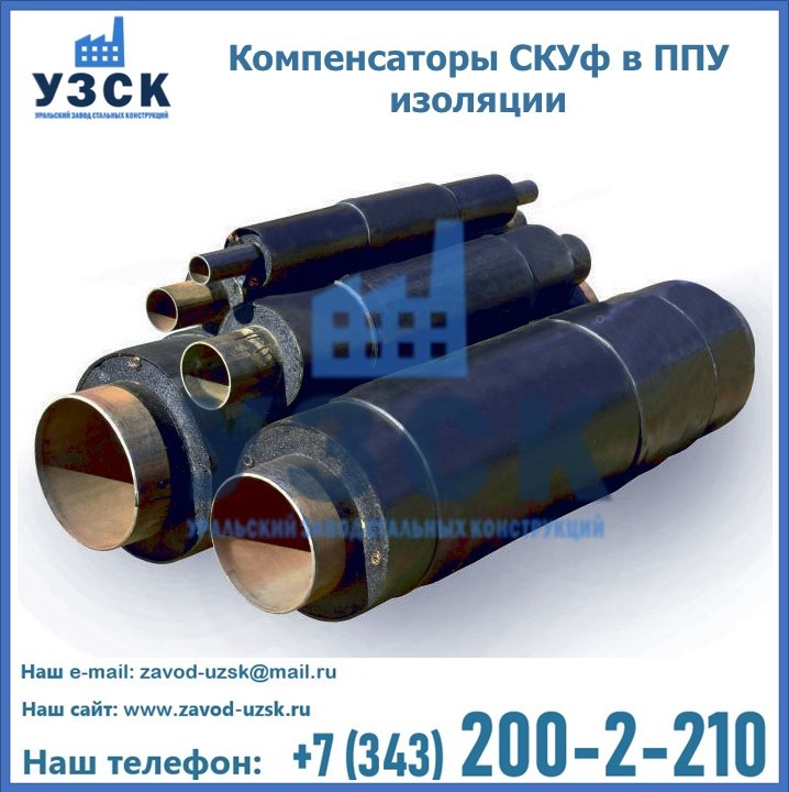 Если трубы для прокладки усилены теплоизоляцией ППУ, то на них допустимо устанавливать только cильфонный компенсатор СКУф в ППУ с такими же размерами теплоизоляционного слоя. На данный момент, такие устройства считаются одними из наиболее надежных, эффективных и долговечных элементов, способных обеспечить бесперебойную работу трубопроводов. На заводе «УЗСК» вы можете купить СКУф ППУ и другие компенсаторы по приемлемой цене, от надежных производителей. УЗСК осуществляет поставки сильфонных компенсаторов СКУ в ППУ любых типоразмеров. Наше предприятие поставляет и производит оборудование, имеющее длительную гарантию и большой эксплуатационный ресурс. Если требуется изготовить нестандартное изделие, то такой вариант выполнения заказа тоже предусмотрен, так как предприятие имеет собственные производственные площади и надежных поставщиков. На все оборудование имеются чертежи и прочая техническая документация. Чтобы заказать сильфонный узел СКУф в ППУ изоляции в Сатпаеве необходимо направить запрос через форму онлайн-заказа на сайте или связаться с нашими специалистами по телефонам, указанным в разделе «КОНТАКТЫ .