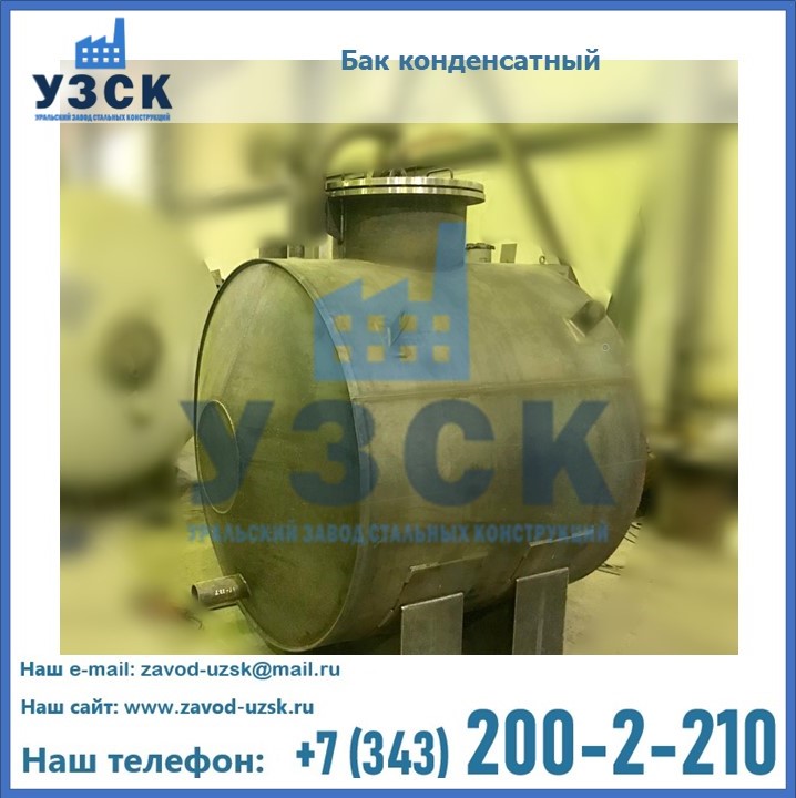 Многие заказчики стараются конденсатные баки купить по выгодной цене в компании «УЗСК» в Сатпаеве. Причин несколько. Производитель поставляет емкости с полным комплектом лестниц, площадок обслуживания. Бак после гидравлических испытаний покрывают специальной внутренней и наружной краской, накладывают теплоизоляцию или наваривают крепеж для навески минматов. Условия теплоизоляции согласуются с заказчиком.