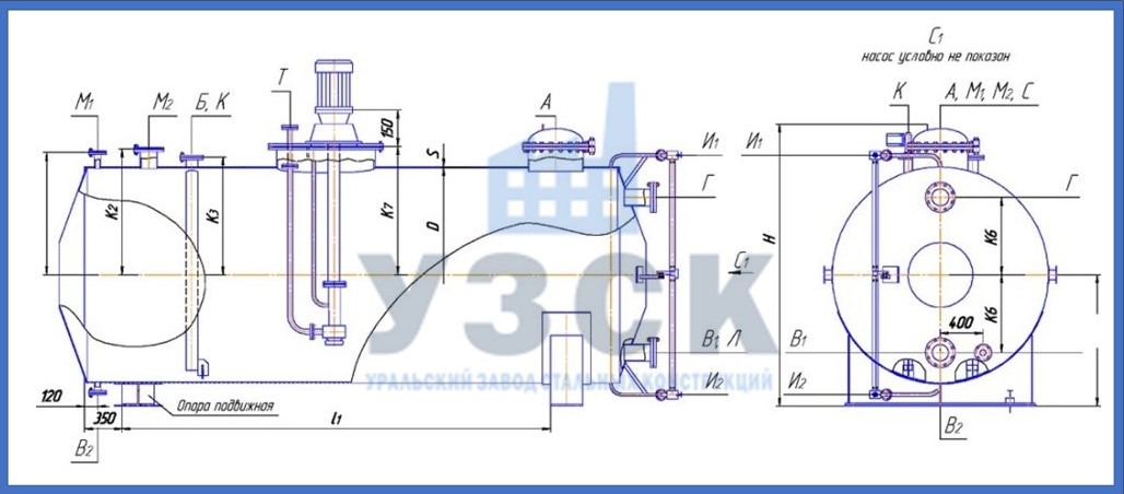 Если вас интересует, как купить по выгодной цене в компании УЗСК горизонтальный аппарат с коническими днищами, воспользуйтесь контактами на сайте производителя. Наши специалисты ознакомят вас с прайсом на продукцию. Заказ будет принят после уточнения технических вопросов, связанных с эксплуатацией и обвязкой резервуара.