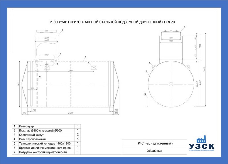 РГСДн-20: горизонтальный резервуар двустенный наземного расположения;