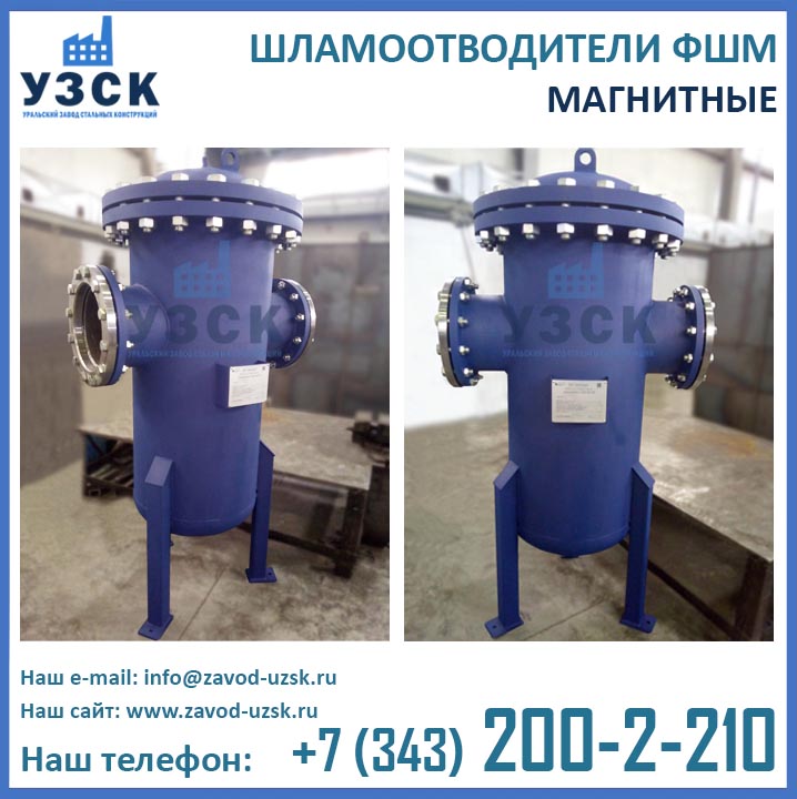 Являясь непосредственным изготовителем фильтров магнитных ФШМ, Уральский завод стальных конструкций предлагает самые низкие цены на шламоотделители ФШМ Ду250 в Сатпаеве. Производство магнитных шламоотводителей осуществляется в самые короткие сроки специалистами сварочного производства НАКС по аттестованной технологии сварки при помощи сварочного оборудования, аттестованного Национальным агентством контроля сварки.