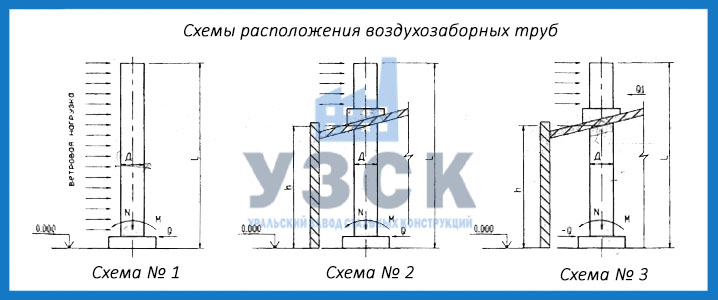 - схема №1 – расположение труб воздухозаборных вне промышленных зданий,